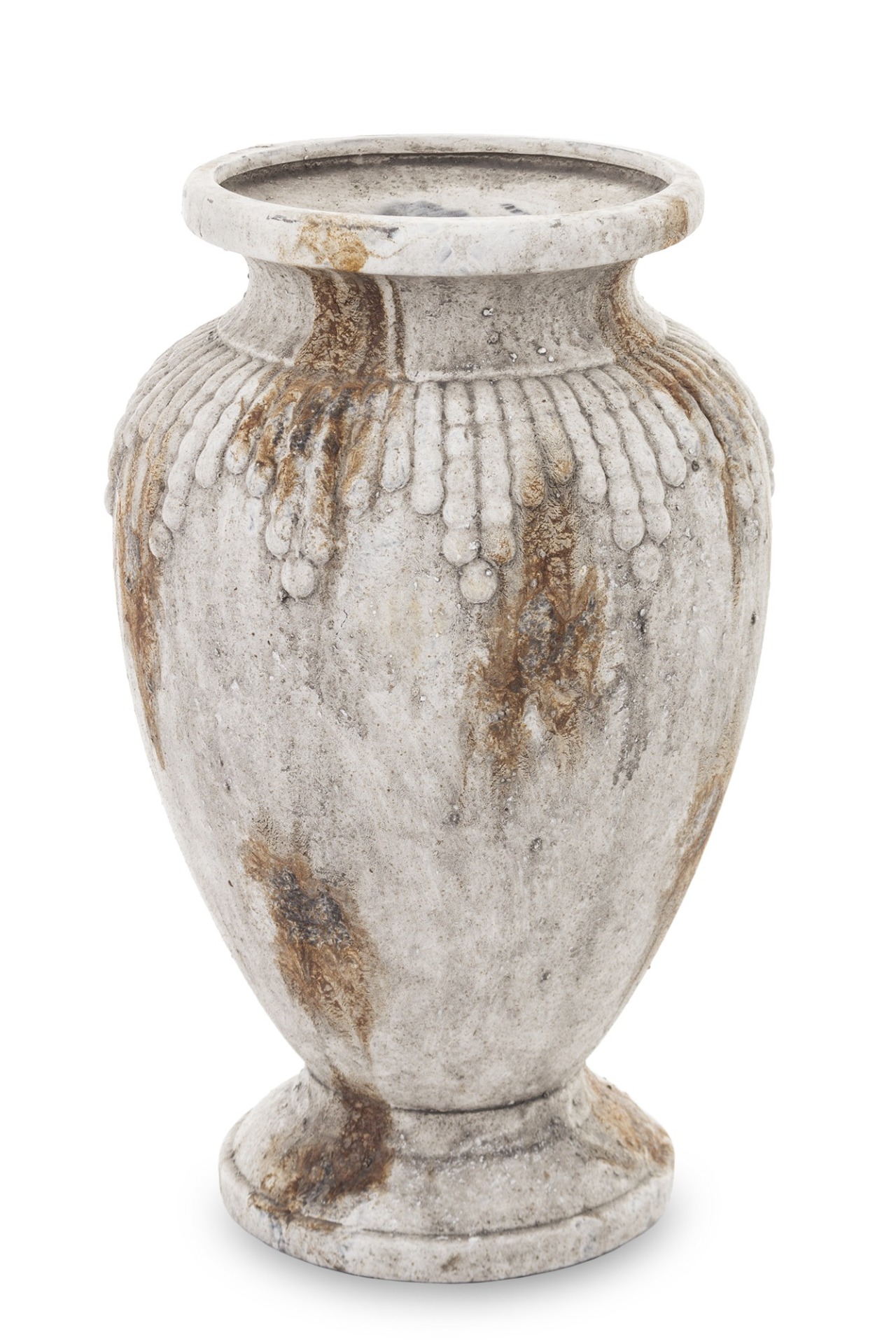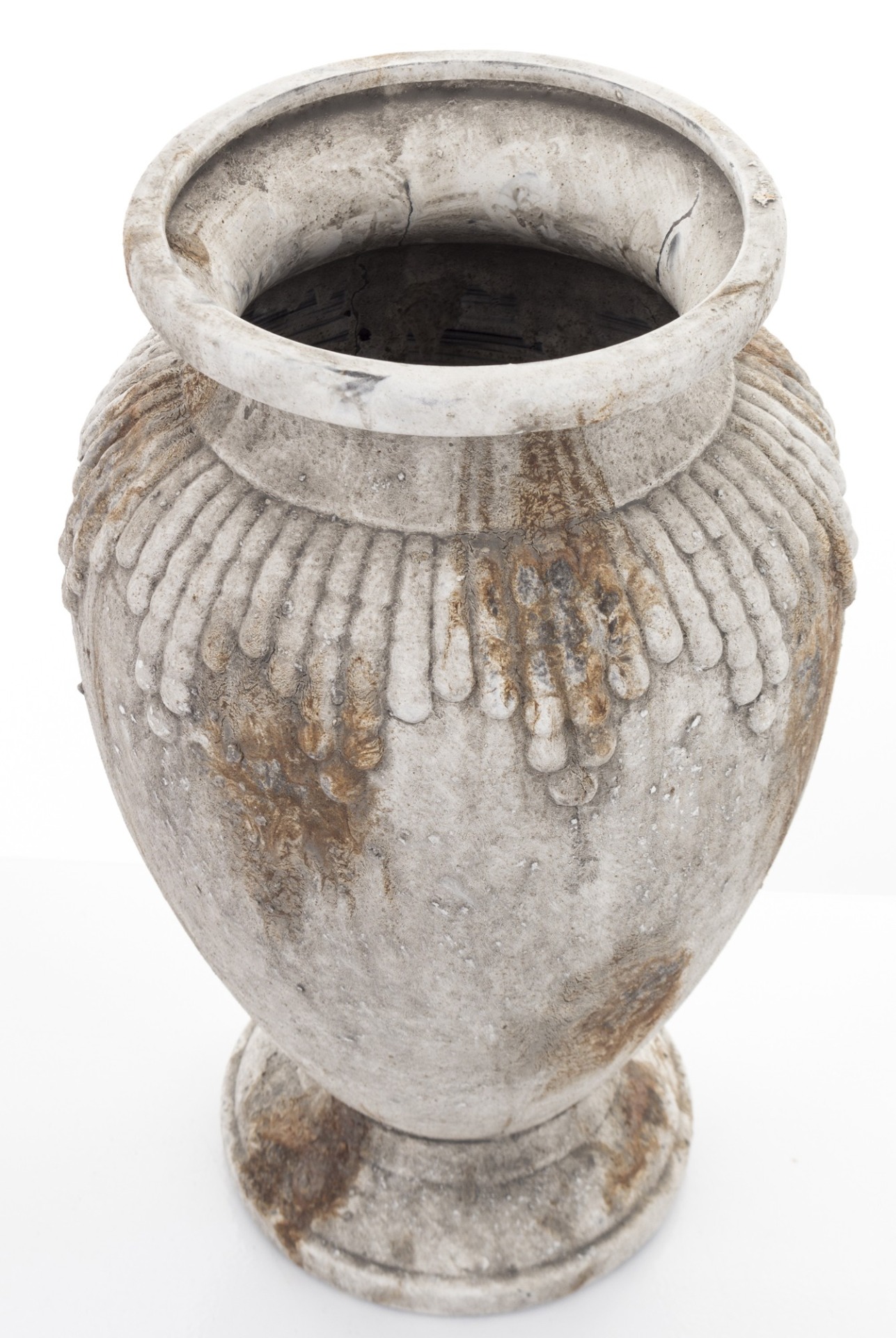 Extra velká váza/ květináč z lehké cementovo-betonové směsi. Váza je šedé barvy s prvky hnědé a rezavé. Krásný a originální kousek , velká velikost.