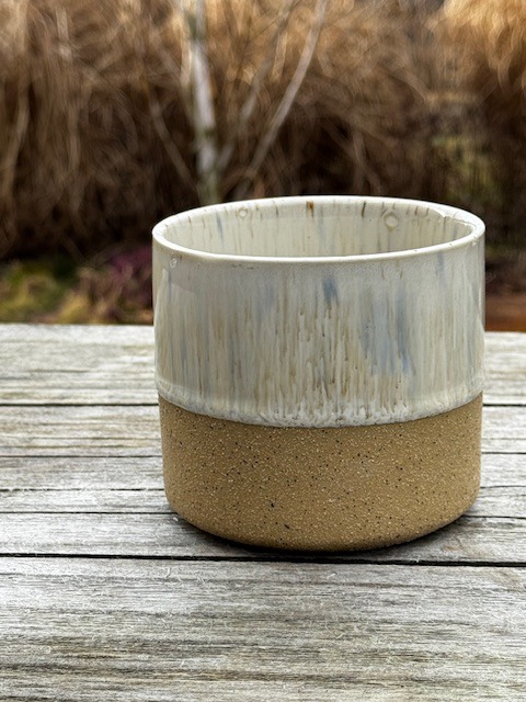Kameninový květináč , spodní část režná, horní část a celý vnitřek květináčku glazovaný.